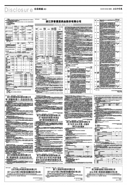 浙江莎普爱思药业股份有限公司(以下简称“公司”)第三届监事会第十次会议于2016年10月26日上午10:00以现场及通讯方式召开,其中监事缪跃英女士因出差以通讯方式表决。本次监事会已于2016年10月16日以电子邮件、电话等方式通知全体监事。会议由监事会主席徐洪胜主持,会议应出席监事3人,实际出席监事3人。本次会议的召开符合《公司法》和《公司章程》等有关规定,会议决议合法、有效。