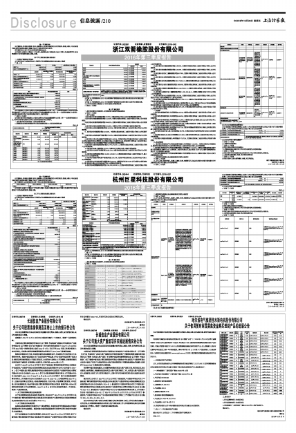 浙江双箭橡胶股份有限公司2016年第三季度报告