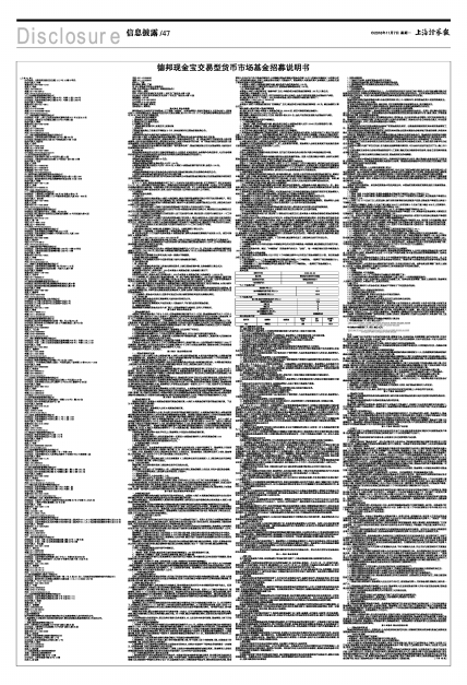 4、本基金场外份额根据每日基金收益情况,以每万份基金已实现收益为基准,为投资者每日计算当日收益并分配,且每日进行支付。投资者当日收益分配的计算保留到小数点后2位,小数点后第3位按去尾原则处理(因去尾形成的余额进行再次分配,直到分完为止);投资者可通过赎回基金份额获得现金收益;若投资者在当日收益支付时,若当日净收益大于零,则增加基金份额持有人基金份额;若当日净收益等于零时,则保持基金份额持有人基金份额不变;若当日基金净收益小于零时,缩减基金份额持有人基金份额;(下转48版)