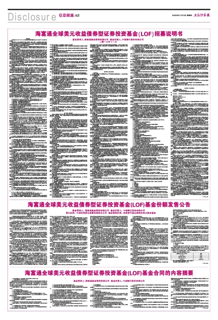 8、基金份额发售公告:指《海富通全球美元收益债券型证券投资基金(LOF)基金份额发售公告》