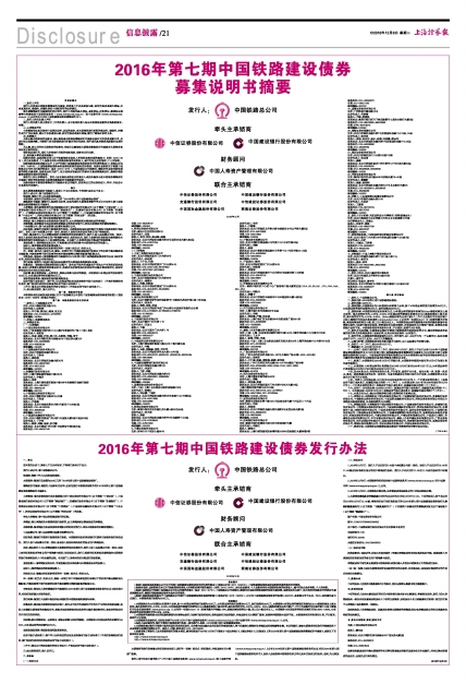 募集说明书摘要:指发行人根据有关法律、法规为发行本期债券而制作的《2016年第七期中国铁路建设债券募集说明书摘要》。