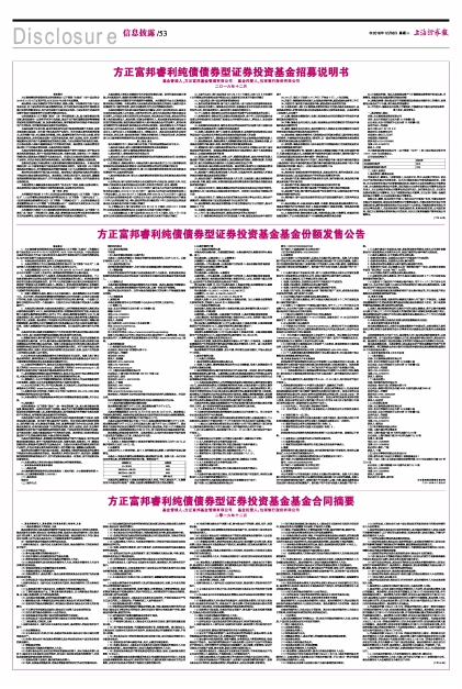 7、基金份额发售公告:指《方正富邦睿利纯债债券型证券投资基金基金份额发售公告》