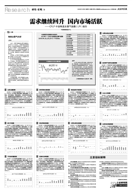 11月份,物流业景气指数、公路运价指数、仓储指数、电商物流指数均有所上升,反映国内市场继续维持需求回升、市场活跃、经济向好的态势。从行业看,传统运输行业中铁路和公路运输业继续保持在扩张区间,水上运输业回升明显;快递业受电商活动影响,继续保持高位回升态势。从品种上看,大宗商品中有色、煤炭、机械设备等物流活动活跃;快速消费品中食品、日用品、农副产品等需求旺盛。