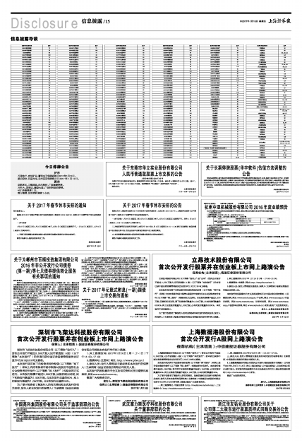 1、网上路演时间:2017年1月16日(周一,T-1日)下午14:00-17:00