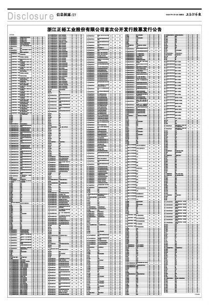 浙江正裕工业股份有限公司首次公开发行股票发行公告