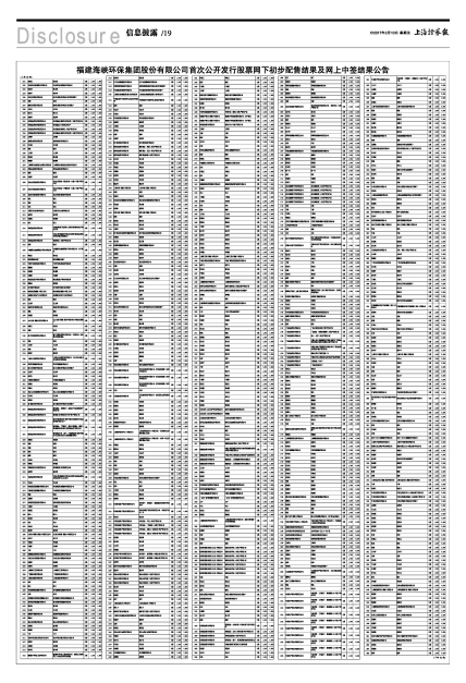 福建海峡环保集团股份有限公司首次公开发行股票网下初步配售结果及网上中签结果公告