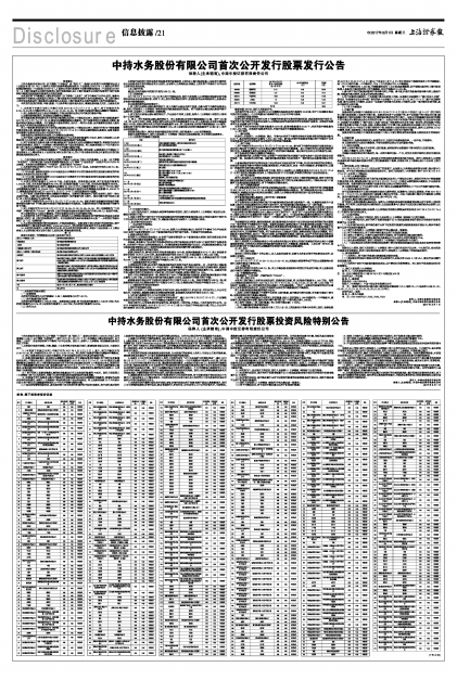 中持水务股份有限公司首次公开发行股票投资风险特别公告