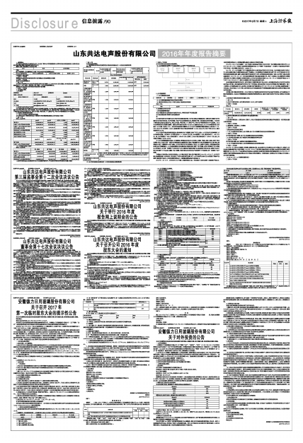 1、《山东共达电声股份有限公司2016年度报告及其摘要》