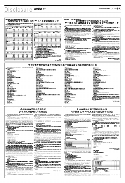 2017年2月,本集团引进1架B737-800飞机,1架EM9飞机,退出1架EM4飞机,1架B737-700飞机。截至2017年2月底,本集团合计运营344架飞机。