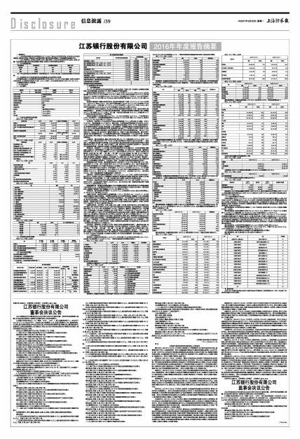 江苏银行股份有限公司2016年年度报告及其摘要全文详见公司同日发布的公告。