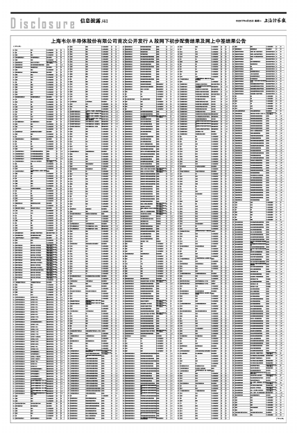 上海韦尔半导体股份有限公司首次公开发行A股网下初步配售结果及网上中签结果公告