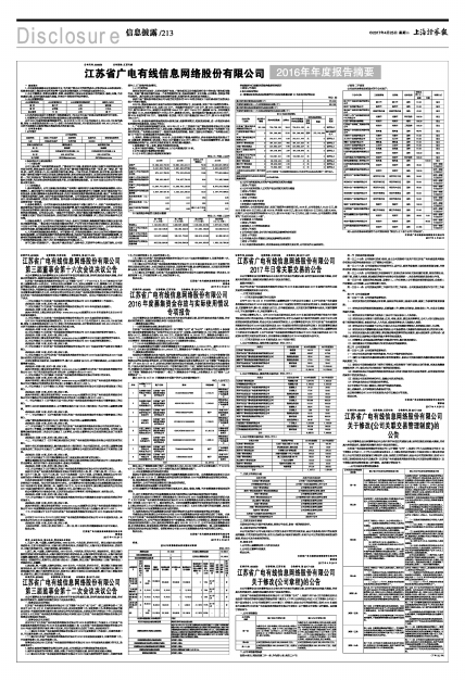 具体内容详见上海证券交易所网站(www.see.com.cn)披露的《江苏省广电有线信息网络股份有限公司2016年度募集资金存放与实际使用情况的专项报告》的公告(公告编号:临2017-006)。
