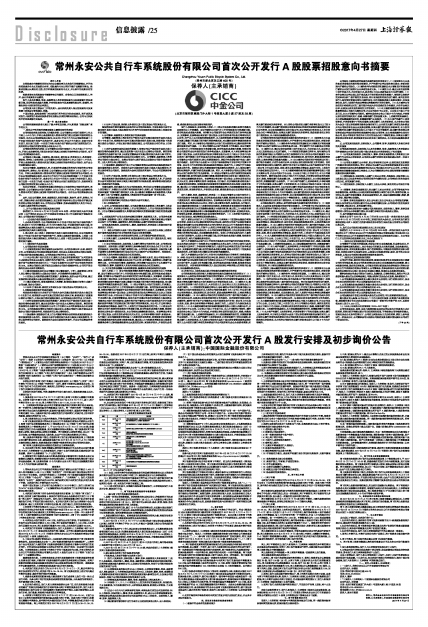 常州永安公共自行车系统股份有限公司首次公开发行A股发行安排及初步询价公告