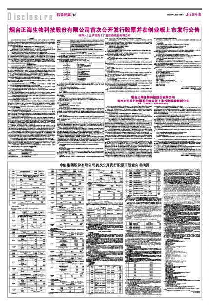 烟台正海生物科技股份有限公司首次公开发行股票并在创业板上市发行公告