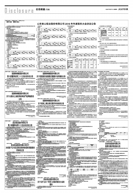 1、 山东南山铝业股份有限公司2016年年度股东大会决议;