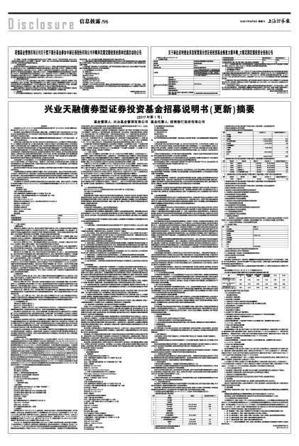 本招募说明书(更新)依据《中华人民共和国证券投资基金法》、《公开募集证券投资基金运作管理办法》、《证券投资基金销售管理办法》、《证券投资基金信息披露管理办法》及其它有关法律法规的要求,对本基金管理人于2016年12月2日刊登的《兴业天融债券型证券投资基金招募说明书(更新)(2016年第1号)》进行了更新,并根据基金管理人在《基金合同》生效后对本基金实施的投资经营活动进行了内容的补充和更新,主要补充和更新的内容如下: