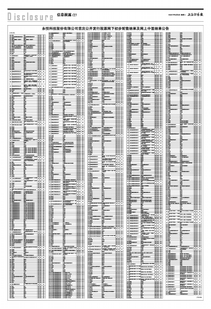 永悦科技股份有限公司首次公开发行股票网下初步配售结果及网上中签结果公告