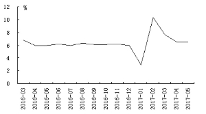 2017年5月,我国工业增加值同比增长6.5%,与4月持平。但从主要工业产品产量增速来看,5月涨少跌多,上游发电量同比增速从4月的5.4%小幅回落至5.0%,中游粗钢、水泥、乙烯、有色产量增速均出现下降,下游汽车产量增速回升但仍然偏低。