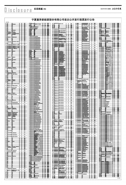 宁夏嘉泽新能源股份有限公司首次公开发行股票发行公告