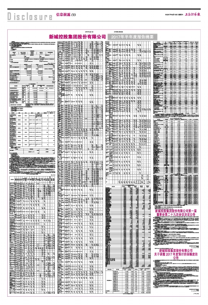 详情请见公司同日于上海证券交易所网站(www.sse.com.cn)披露的《新城控股2017年半年度报告》及《新城控股2017年半年度报告摘要》。