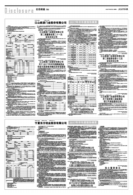 宁夏东方钽业股份有限公司七届三次董事会会议于2017年8月18日召开,作为公司的独立董事,我们参加了这次会议。根据《关于上市公司建立独立董事制度的指导意见》、《上市公司治理准则》的要求和《公司章程》的有关规定,基于独立判断的立场,就本次会议审议的议案发表如下独立意见: