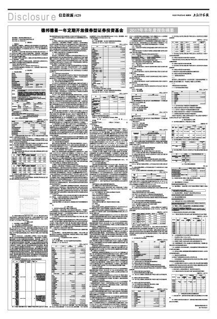 注:报告截止日2017年6月30日,德邦德景一年定开债A基金份额净值1.0059元,基金份额总额1121364343.64份;德邦德景一年定开债C基金份额净值1.0033元,基金份额总额339449917.97份。德邦德景一年定开债份额总额合计为1460814261.61份。
