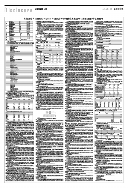 首创证券有限责任公司2017年公开发行公司债券募集说明书摘要(面向合格投资者)