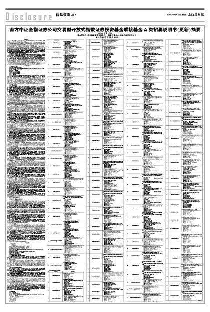 南方中证全指证券公司交易型开放式指数证券投资基金联接基金A类招募说明书(更新)摘要