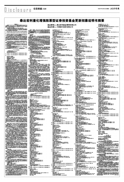 泰达宏利量化增强股票型证券投资基金更新招募说明书摘要
