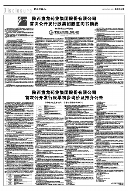 陕西盘龙药业集团股份有限公司首次公开发行不超过2,167万股人民币普通股(A股)(以下简称“本次发行”)的申请已获中国证监会证监许可[2017]1875号文核准。本次发行的保荐机构为中泰证券股份有限公司(以下简称“中泰证券”、“主承销商”或“保荐机构(主承销商)”)。