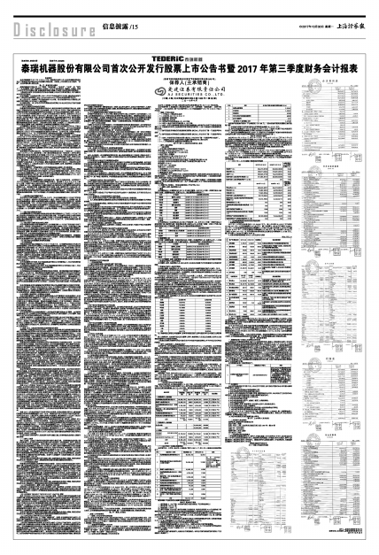 泰瑞机器股份有限公司首次公开发行股票上市公告书暨2017年第三季度财务会计报表