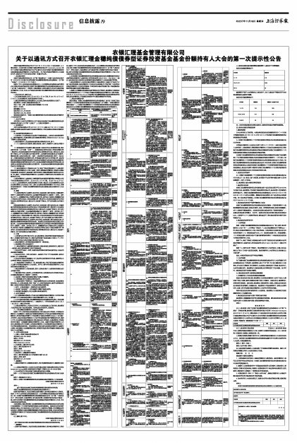 关于以通讯方式召开农银汇理金穗纯债债券型证券投资基金基金份额持有人大会的第一次提示性公告