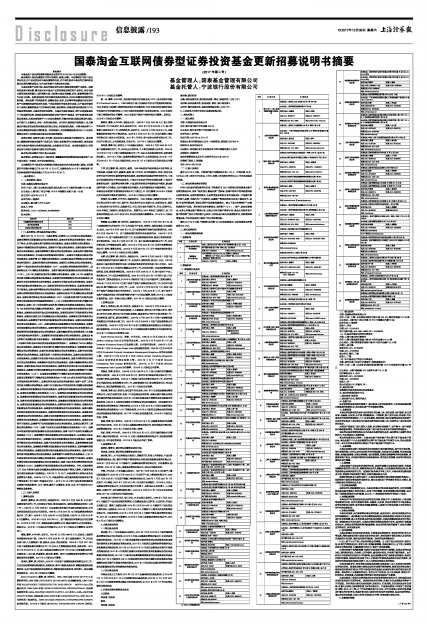 国泰淘金互联网债券型证券投资基金更新招募说明书摘要