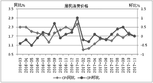 2017年以来,我国居民消费价格温和上涨,涨幅低位运行;工业生产者价格波动上升,涨幅高位震荡。2017年1月至11月,CPI上涨1.5%,PPI上涨6.4%,预计2017年CPI上涨1.6%,PPI上涨6.3%。展望2018年,综合考虑各种因素和翘尾因素的影响,预计2018年CPI上涨2.0%,PPI上涨3.5%。建议实施稳健中性的货币政策,推进能源资源和服务领域价格改革,保障主要农产品供给平稳,做好房地产调控工作,稳定市场预期。