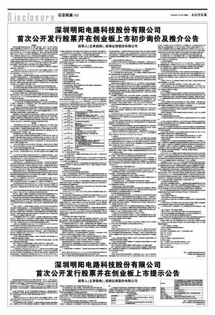 17、本公告仅对本次发行中有关初步询价事宜进行说明。投资者欲了解本次发行的详细情况,请仔细阅读2018年1月15日(T-6日)登载于中国证监会指定网站(巨潮资讯网,www.cninfo.com.cn;中证网,www.cs.com.cn;中国证券网,www.cnstock.com;证券时报网,www.secutimes.com;中国资本证券网,www.ccstock.cn)和发行人网站(www.sunshinepcb.com)的招股意向书全文,《深圳明阳电路科技股份有限公司首次公开发行股票并在创业板上市提示公告》同日刊登于《中国证券报》、《上海证券报》、《证券时报》和《证券日报》。