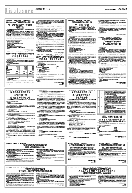 预计2018年第一季度业绩同向大幅度上升,主要系公司全资子公司惠州中京电子科技有限公司受益于产能有序提升、主营业务销售订单大幅增长,且公司HDI项目自2017年第四季度以来实现盈利,业绩同比大幅度改善。