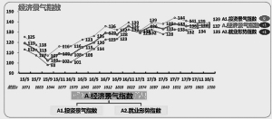 我国经济通过增长动能转换、结构性改革及发挥增长潜力,加上国际市场转好,使得2017年我国经济运行小幅回升,改变了经济增长持续3年放缓的态势。本期经济景气指数为137点,比上期小幅上涨了1个百分点。进一步分析,经济景气指数包含两个二级指标——就业形势指数和投资景气指数,就业形势指数和投资景气指数“一升一平”。分区域看,本期中西部、北部及京沪深地区经济景气指数有所回升,而东部和南部地区经济景气指数则小幅下滑。