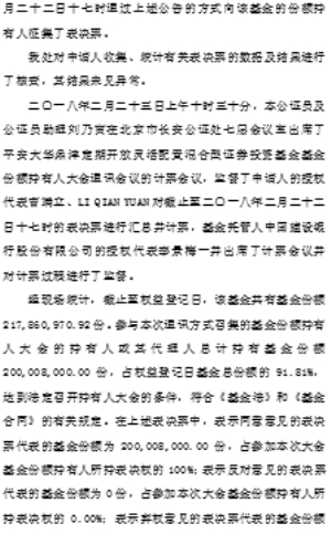 2018年2月23日,在本基金基金托管人中国建设银行股份有限公司授权代表的监督下,本基金管理人对本次大会表决进行了计票,北京市长安公证处对计票过程进行了公证,北京市同硕律师事务所对计票过程进行了见证。本次持有人大会的表决结果为:本次基金份额持有人大会中,出具有效表决意见的基金份额持有人及代理人所代表的基金份额为200,008,000.00份,占权益登记日基金总份额的91.81%,其中对《关于平安大华鼎沣定期开放灵活配置混合型证券投资基金转型相关事项的议案》的表决情况:同意票所代表的基金份额为200,008,000.00份,占出具有效表决意见的基金份额持有人及代理人所代表的基金份额总数的100%;反对票所代表的基金份额为0份,占出具有效表决意见的基金份额持有人及代理人所代表的基金份额总数的0%,弃权票所代表的基金份额为0份,占出具有效表决意见的基金份额持有人及代理人所代表的基金份额总数的0%。