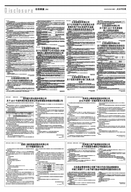 比亚迪股份有限公司(以下简称“公司”)于2018年3月27日召开的第六届董事会第七次会议审议通过了公司《2017年年度报告》全文及其摘要。《2017年年度报告》全文及其摘要于2018年3月28日刊登在巨潮资讯网站(http://www.cnifo.com.cn)上,同时《2017年年度报告摘要》刊登在当日的《中国证券报》、《证券时报》、《上海证券报》、《证券日报》上,供全体股东和投资者查询阅读。