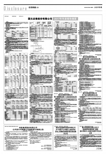 《国元证券股份有限公司2017年年度报告》、《国元证券股份有限公司2017年度社会责任报告》、《国元证券股份有限公司2017年度内部控制评价报告》、《国元证券股份有限公司2017年度风险控制指标报告》、《国元证券股份有限公司2017年度董事薪酬及考核情况专项说明》、《国元证券股份有限公司2017年度高级管理人员薪酬及考核情况专项说明》、《国元证券股份有限公司独立董事关于公司部分会计政策变更的独立意见》、《国元证券股份有限公司独立董事关于公司2017年度利润分配预案的独立意见》、《国元证券股份有限公司独立董事关于对公司内部控制评价报告的独立意见》、《国元证券股份有限公司独立董事关于公司聘请2018年度审计机构的独立意见》和《国元证券股份有限公司独立董事2017年度述职报告》详见巨潮资讯网(www.cninfo.com.cn);《国元证券股份有限公司关于会计政策变更的公告》和《国元证券股份有限公司2017年年度报告摘要》详见2017年3月28日《中国证券报》、《证券时报》、《上海证券报》、《证券日报》及巨潮资讯网(www.cninfo.com.cn)。