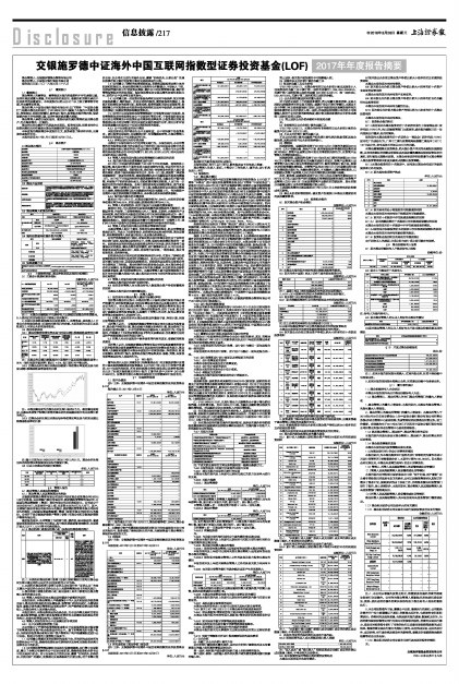 普华永道中天会计师事务所(特殊普通合伙)对交银施罗德中证海外中国互联网指数型证券投资基金(LOF)2017年12月31日的资产负债表,2017年度的利润表、所有者权益(基金净值)变动表以及财务报表附注出具了标准无保留意见的审计报告【普华永道中天审字(2018)第21968号】。投资者可通过本基金年度报告正文查看该审计报告全文。