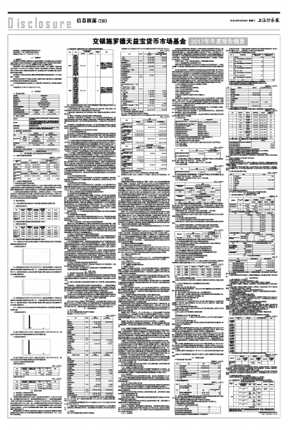 本托管人依法对交银施罗德基金管理有限公司编制和披露的交银施罗德天益宝货币市场基金2017年年度报告中财务指标、净值表现、利润分配情况、财务会计报告、投资组合报告等内容进行了核查,以上内容真实、准确和完整。