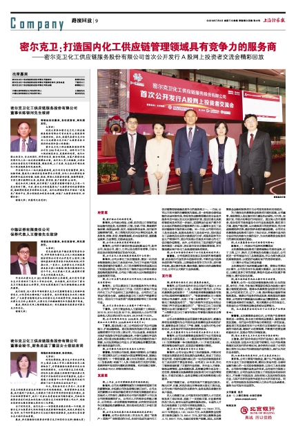 ——密尔克卫化工供应链服务股份有限公司首次公开发行A股网上投资者交流会精彩回放