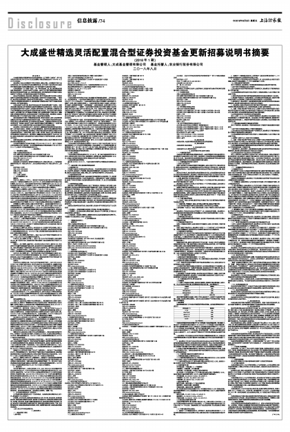 大成盛世精选灵活配置混合型证券投资基金更新招募说明书摘要