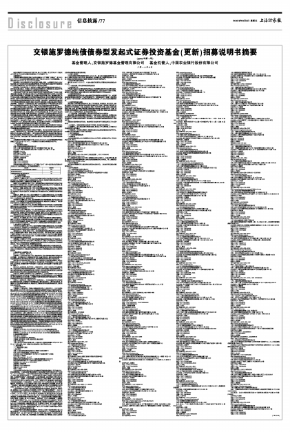 交银施罗德纯债债券型发起式证券投资基金(更新)招募说明书摘要