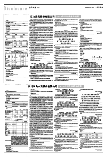 1、审议通过了《巨力索具股份有限公司2018年半年度报告全文及摘要》;