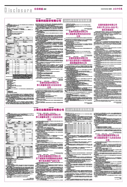 《上海交运集团股份有限公司2018年半年度报告》、《上海交运集团股份有限公司2018年半年度报告摘要》刊登于上海证券交易所网站(http://www.sse.com.cn),敬请投资者查阅。