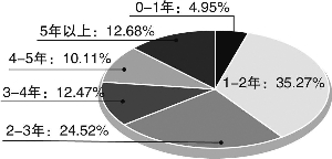 就偏股混合型基金经理而言,任职年限1至2年的基金经理最多,占比达到35.27%,其次,任职年限2至3年的占比达24.52%,而任职年限超过5年的基金经理占比低于13%。