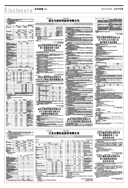 具体内容详见公司同日刊载于《中国证券报》、《上海证券报》、《证券时报》、《证券日报》及在上海证券交易所网站(www.sse.com.cn)发布的《新东方新材料股份有限公司2018年第三季度报告及正文》(公告编号:2018-053)。