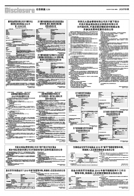 嘉合货币市场基金关于2019年春节前暂停申购、转换转入及定投业务的公告